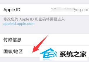 3、在输入Apple id账号密码,打开国家/地区一栏,如图箭头所示位置: