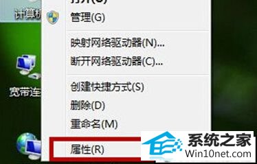 1、返回到电脑桌面,找到桌面的计算机图标,右键点击,选择属性选项;
