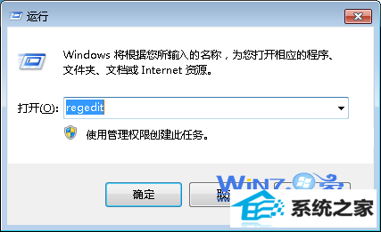 1、打开开始菜单中的运行,在运行对话框中输入“regedit”,回车打开注册表编辑器;