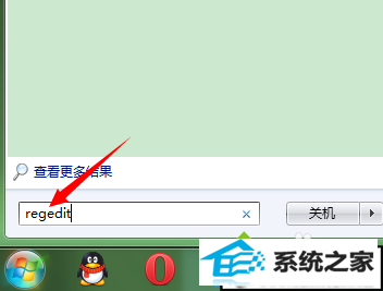 1、首先启动注册表编辑器 开始-->搜索程序:regedit;