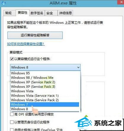 4、勾选 以兼容模式运行这个程序,并尝试选择合适的版本;