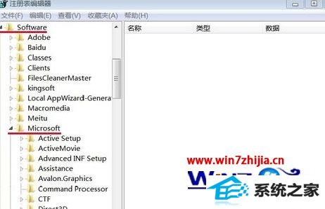 3、在点开的HKEY_CURREnT_UsER下面找到:softwareMicrosoft;