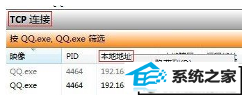 3.点击资源监视器之后,我们就可以看到如下图中所示的界面了,咱们将界面切换到网络这一栏,然后就可以在下方的列表中找到QQ.exe了,咱们将该项选中,然后点击下方的TCp连接即可监视目前的QQ网络相关情况了。