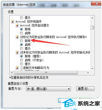 6、然后找到【对标记为可安全执行脚本的Activex控件执行脚本】将其启用,点击确定。