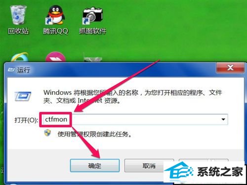 7: 还有个快捷方法,打开“开始菜单”,启动“运行”程序,然后输入ctfmon命令,按“确定”,也可调出输入法图标。