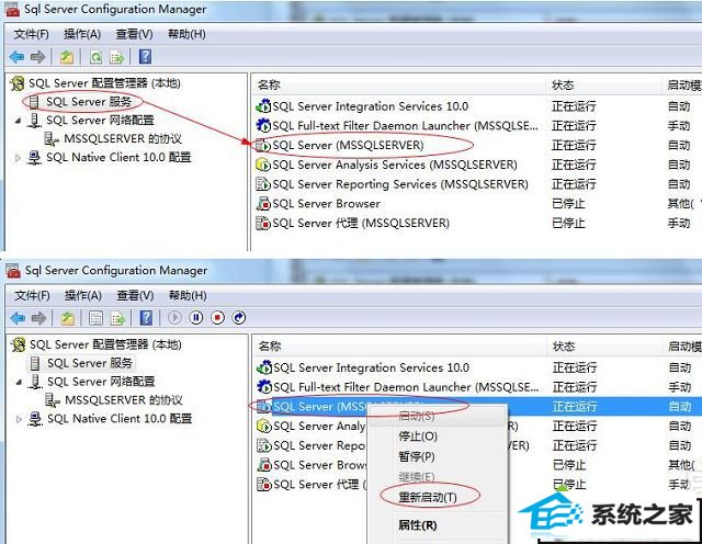 6、然后重启sqlserver服务,然后就可以进入sql了。