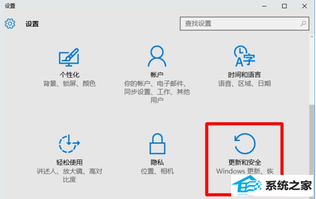 1.快捷键“ win + i”打开窗口配置界面,找到“升级和恢复”选项,然后单击进入该界面,如下图所示;