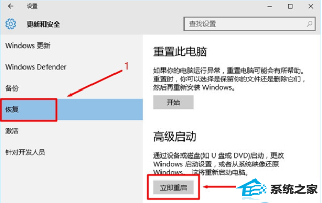 2.进入界面后,单击“恢复”->“立即重启”选项,如下图所示;