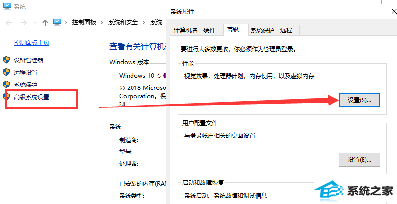 2、打开系统窗口,点击左侧栏目的高级系统配置,弹出系统属性窗口,你们看到性能栏目有虚拟内存字样,点击配置按钮