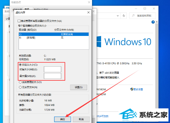 最后,选取硬盘并在自定义大小一栏内配置初始大小、最大值,再按下“确定”按钮即可。