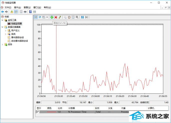 返回性能监视器界面,此时系统会开始监测以上添加的的项目,这里可以看到监视项目的最新值、平均值等信息。