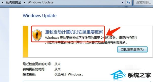 5、两种安装办法可供选择,分别是win update自动升级及手动安装,主编这里选择win update自动升级,有可能需要重新启动。