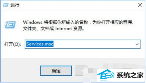 1、按下win键+R组合键 打开运行,输入services.msc回车打开服务,如图: