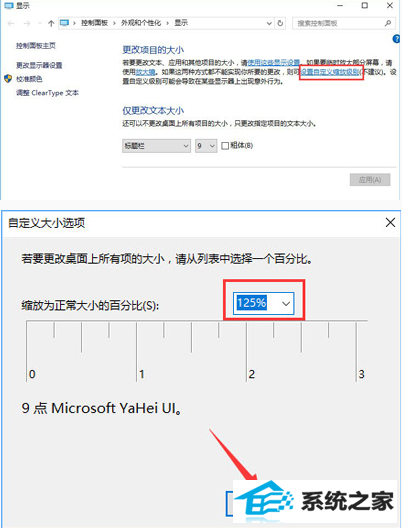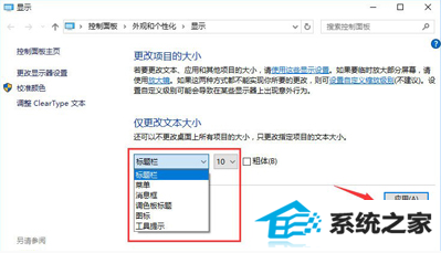 5.修改完缩放比后,在“仅更改文本大小”将所有项目的文本大小统统由9改为10 点击【应用】即可!