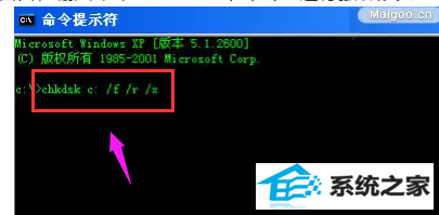 硬盘坏常的现象是开机或运行时简单蓝屏,但还是能进系统。这个问题一般比较的简单修复,主要是系统分区出问题了。你们打开dos命令提示符窗口,输入命令“chkdsk c: /f /r /x”进行强制修复: