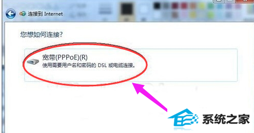直接点击窗口中的“宽带(pppoE)(R)”这个默认选项
