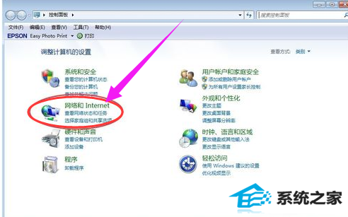 点击桌面左下角的开始:控制面板,然后在打开的控制面板中找到并双击:网络和分享中心。