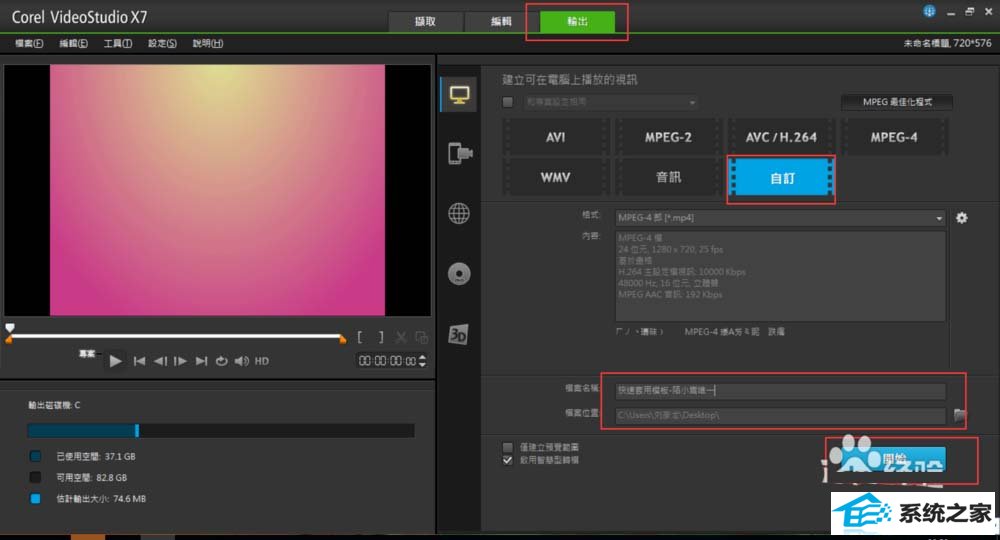 6、所有内容都替换和编辑好后,点输出,配置下参数,把制作好的视频生成。如图: