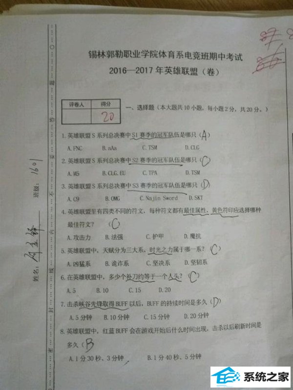 期中,选择题基本都是英雄联盟里面的基础知识,以及s系总决赛常识题目。试卷分为选择题,填空题和简答题三部分。
