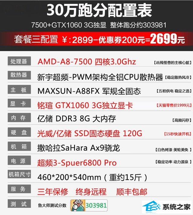 其它的内存、硬盘基本都是没如何听说过的品牌,机箱电源型号也标注不清楚,很明显用的都会是一些淘汰了的硬件。另外,主机号称跑分超过30万分,这样的存在木桶效应的diY电脑,其实很难达到这种跑分级别,多数都是内置了鲁大师软件,然后在跑分上做了手脚。