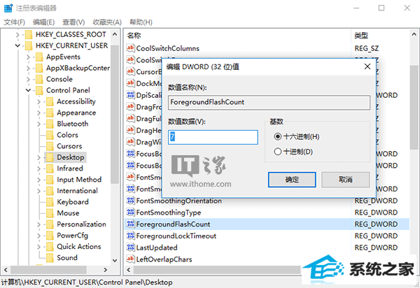 这个数值其实也是可以调节的,就看您喜爱让它闪几次,需要在注册表中进行设定。数值范围是0~7,其中“0”代表最高次数。经过iT之家验证是9次,其余数值分别为实际次数,也便是从1次到7次(如果您输入8或者9,也按照0的标准解决)。所以,如果您觉得1次就过瘾,那么就改为1;或者改为其他您觉得能够达到您认为合适的次数,但无论怎么也超不过9次了,win7表示心有余而力不足……