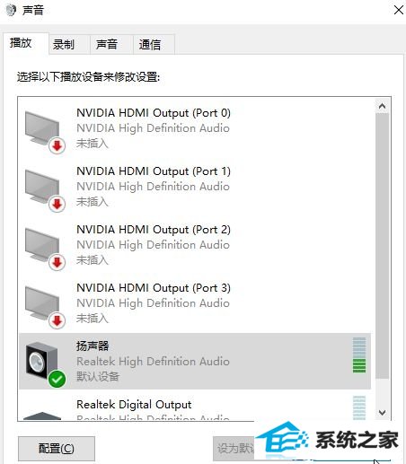 2、接着选中您当前的播放设备,再点击「属性」按钮,如图: