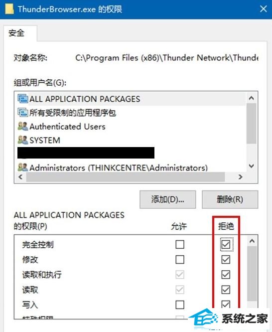 6、在ThunderBrowser.exe上右键-- 属性 -- 安全-- 编辑;