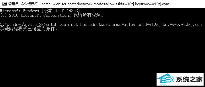 3、创建完成后,继续输入:netsh wlan start hostednetwork 按下回车即可开启热点;
