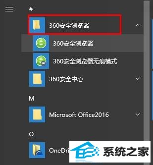 1、比如你们要将360浏览器添加到开始菜单中,首先找到360浏览器;