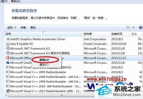 4、右键单击“Microsoft office professional plus 2013”选项,单击卸载;
